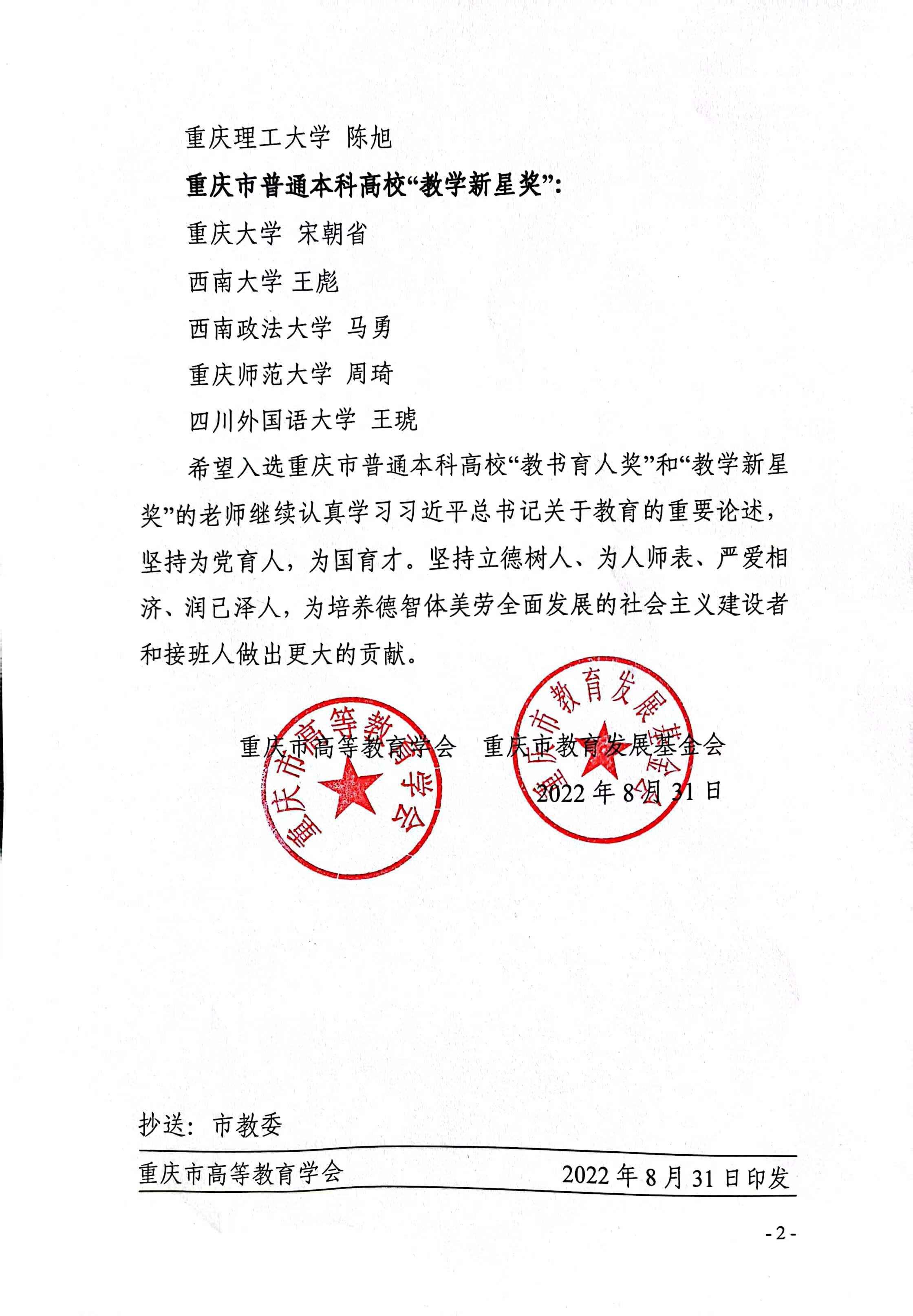 关于公布重庆市普通本科高校“教书育人奖”和“教学新星奖”评选结果的通知(2).jpg
